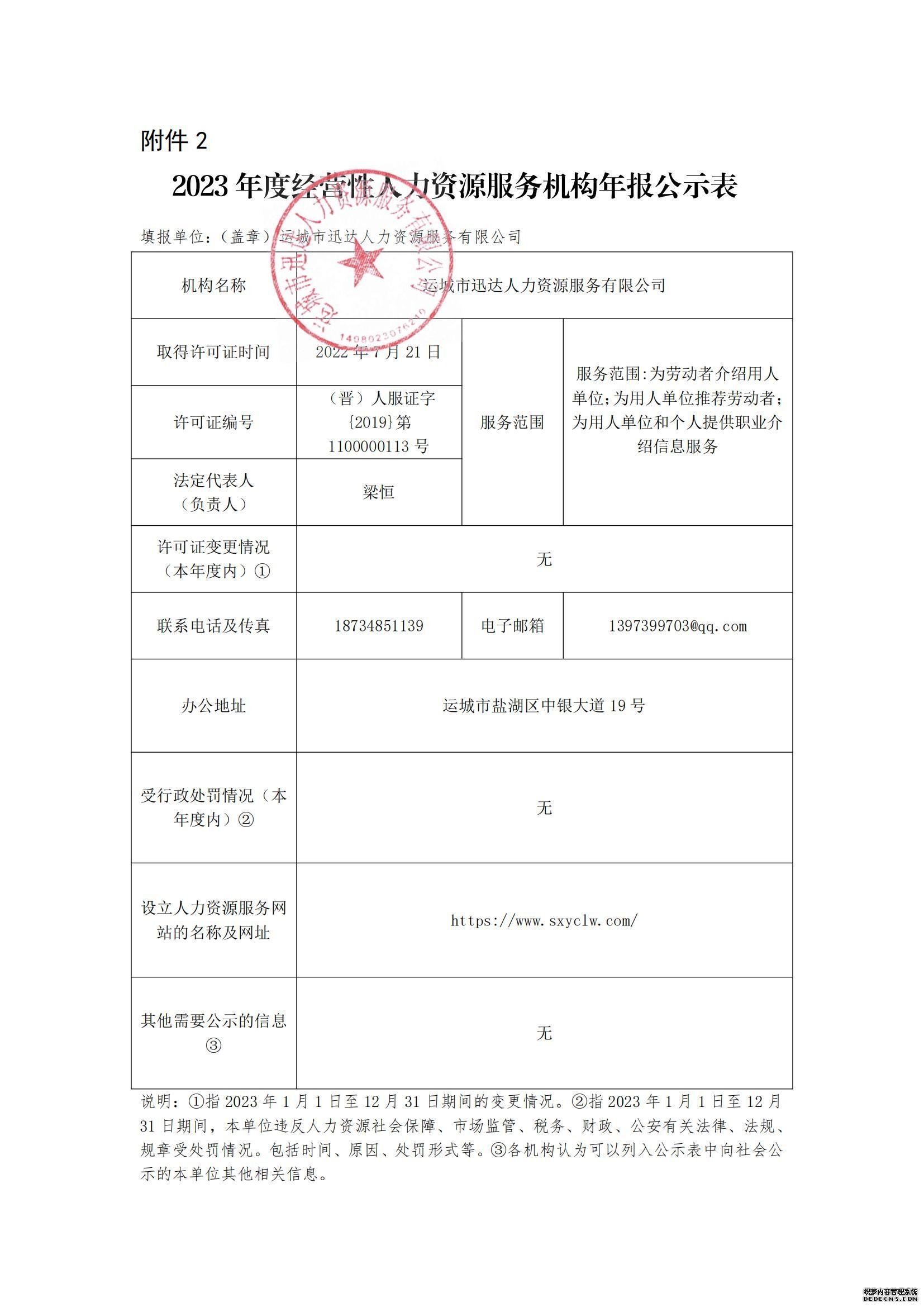 2023 年度經營性人力資源服務機構年報公示